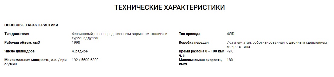 Сочетается двигатель с 7-ступенчатой роботизированной коробкой передач с двойным сцеплением, которая гарантирует плавное переключение и комфортное управление автомобилем. Также стоит отметить полный привод, который помогает справляться с различными дорожными условиями, повышая безопасность и проходимость.